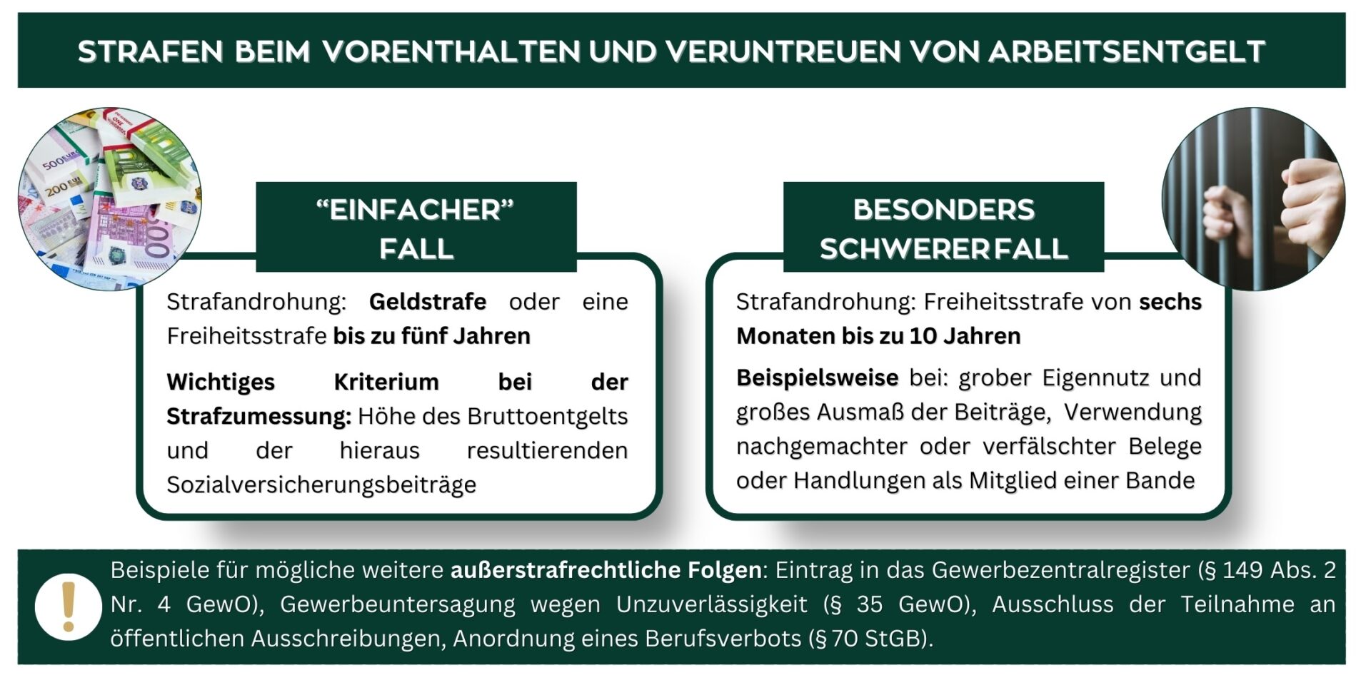 Infografik zu den Strafen beim Vorenthalten und Veruntreuen von Arbeitsentgelt